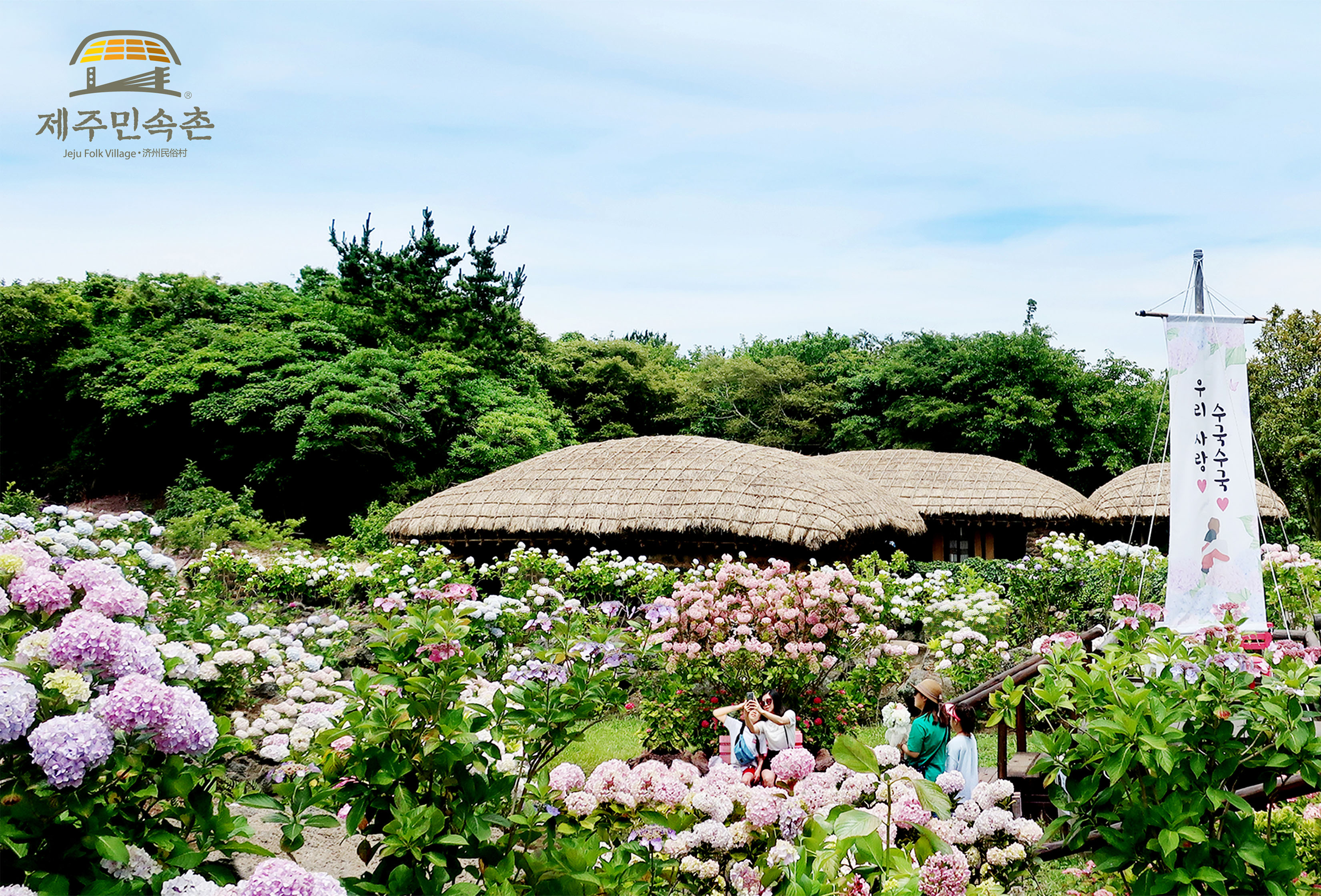 민속촌 구경을 하면서 곳곳에 수국이 많이 피어있어서 표선면 부근을 들린다면 강추합니다. 민속촌에 수국들이 알록달록 피어있는게 얼마나 예쁜지 저도 가서 사진 잔뜩 찍고 왔답니다.