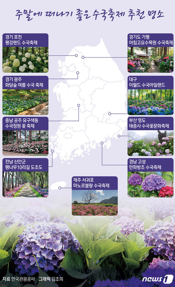 본 글 하단에서는 각 수국축제의 사진도 확인하실 수 있습니다.