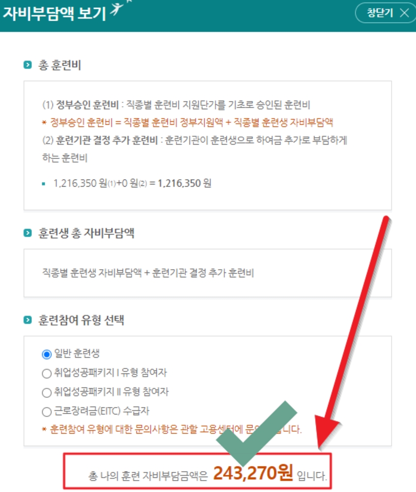 다만, 유의하셔야할 점은 어떤 교육이나 훈련을 받을 때 비용 전액을 지원해주는 경우는 없습니다. 일반적으로 교육비용의 45~85%정도 비율까지 지원을 해주고, 근로장려금 수급자의 경우에는 72.5~92.5%까지 지원해줍니다. 그러니까 어떤 교육을 들으셔도 본인 부담 비용이 조금이라도 발생합니다.