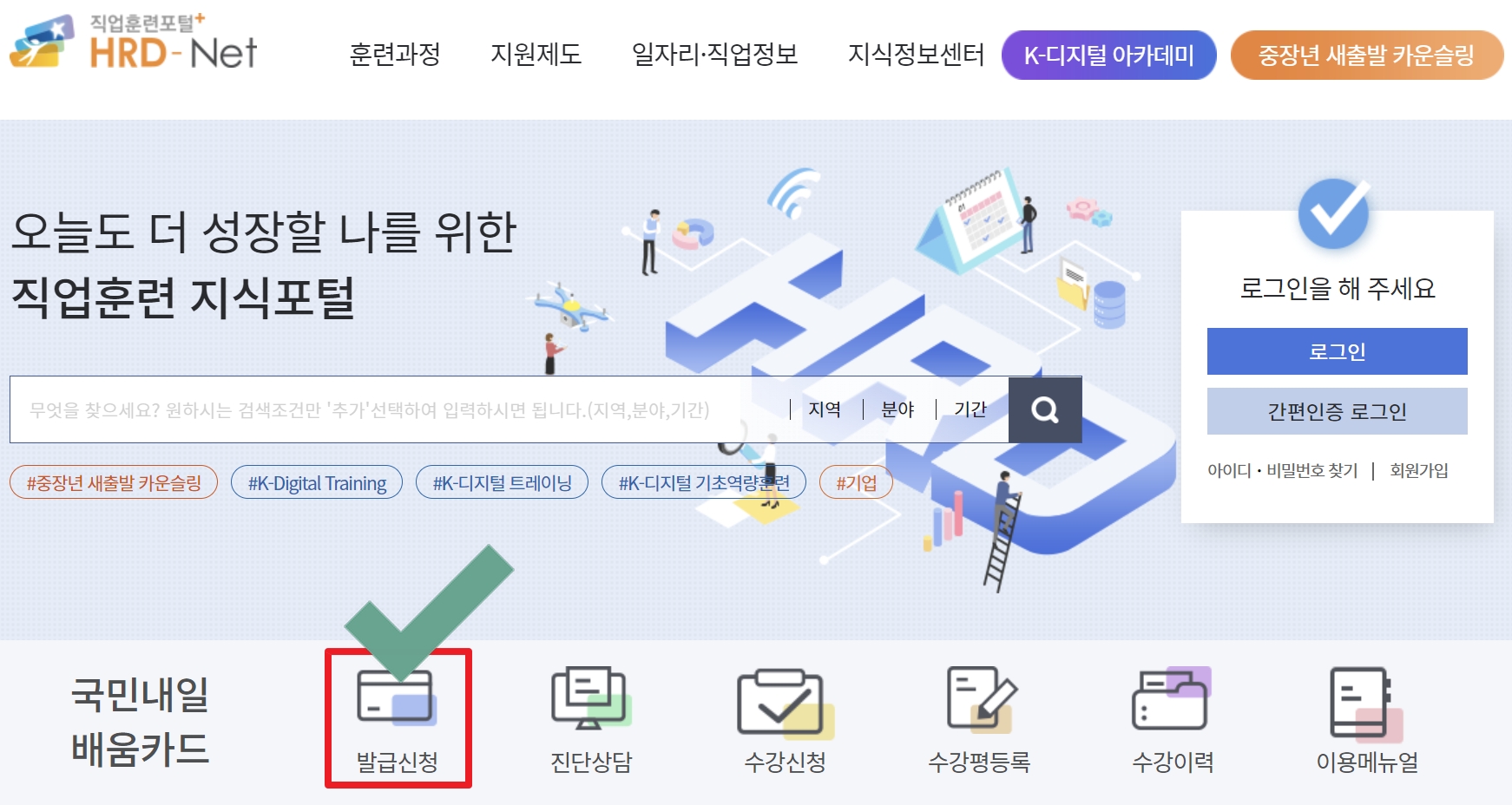 1) HRD-Net 홈페이지에 접속 및 로그인합니다.